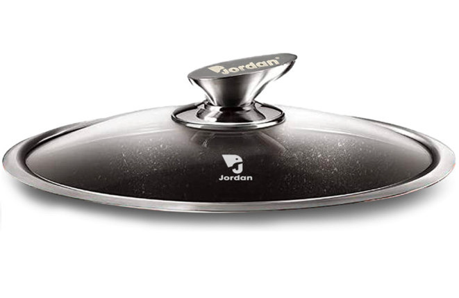 Coperchio universale in vetro temperato e acciaio inox da 18 cm, con pomello in acciao inox; Peso: 0,300kg Diametro 18cm Spessore 4mm
