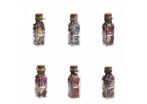 Pot pourri profumato in bottiglia di vetro per decorazione assortito in 6 fragranze