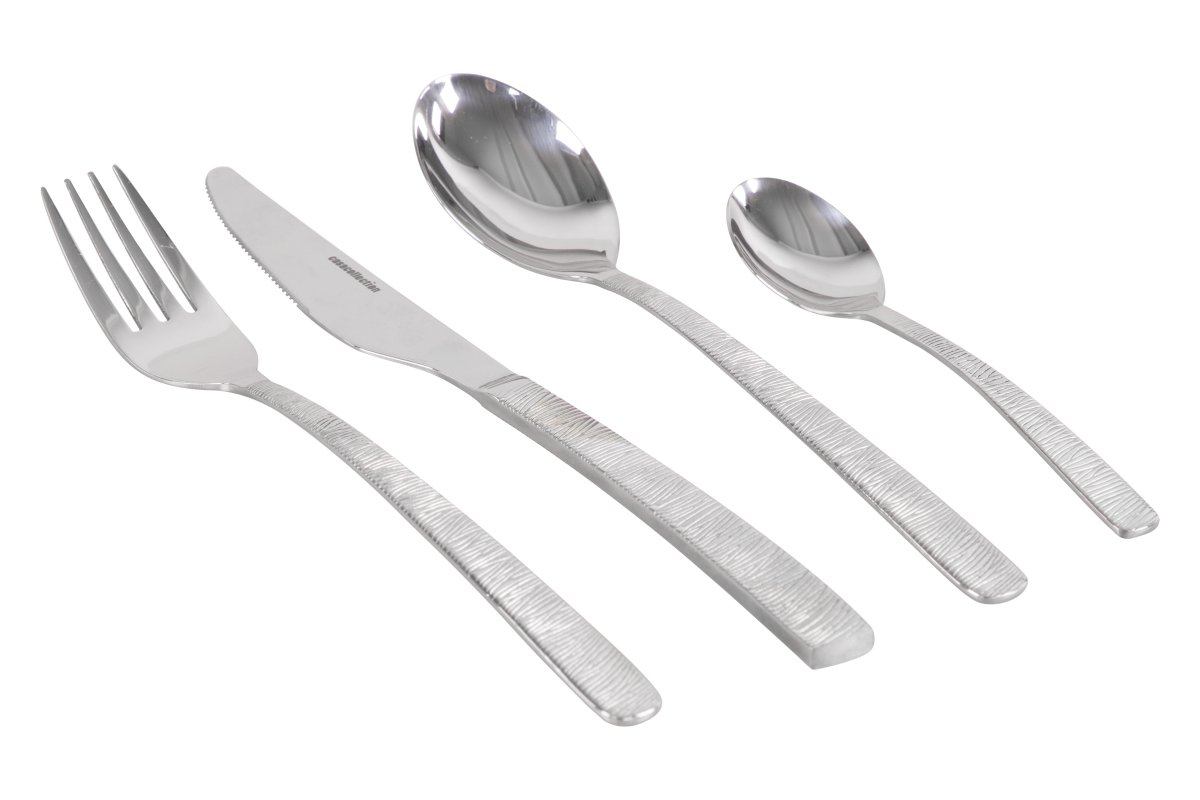 Descrizione: Il Servizio Posate Victoria da 24 pezzi è un set elegante e funzionale, ideale per l'uso quotidiano o per occasioni speciali. Realizzato in acciaio inossidabile 18/0, offre una buona resistenza alla corrosione e una facile manutenzione, rendendolo adatto al lavaggio in lavastoviglie.