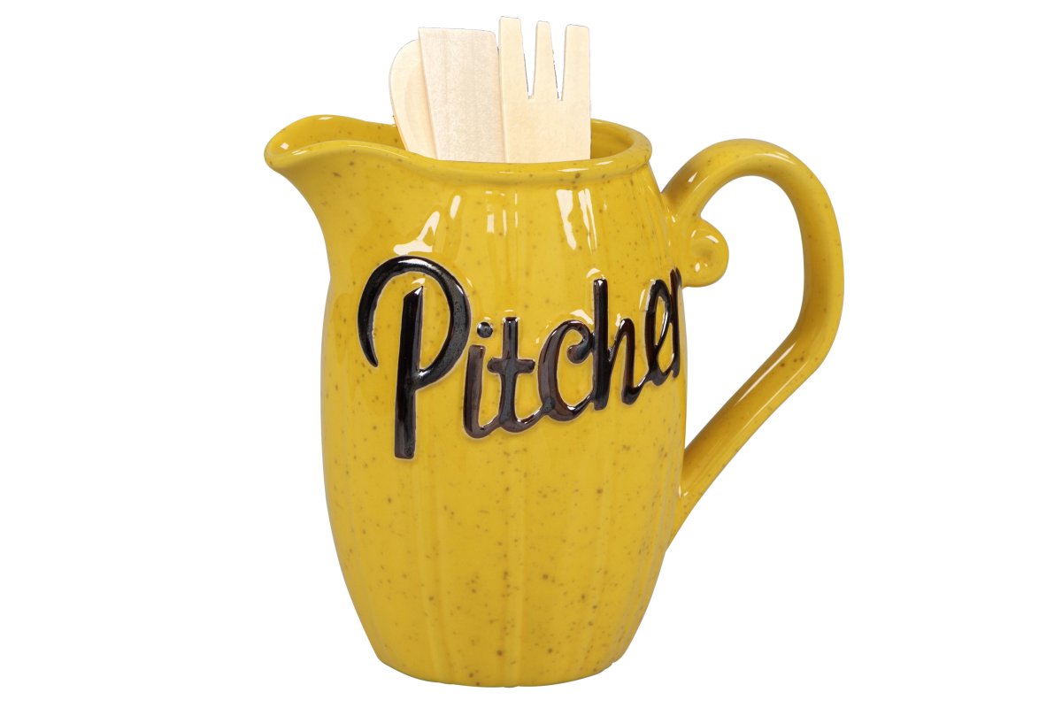 Set portamestoli ceramica rural effetto rustico. Utilizzabile anche come brocca, contiene set completo di mestoli in legno.