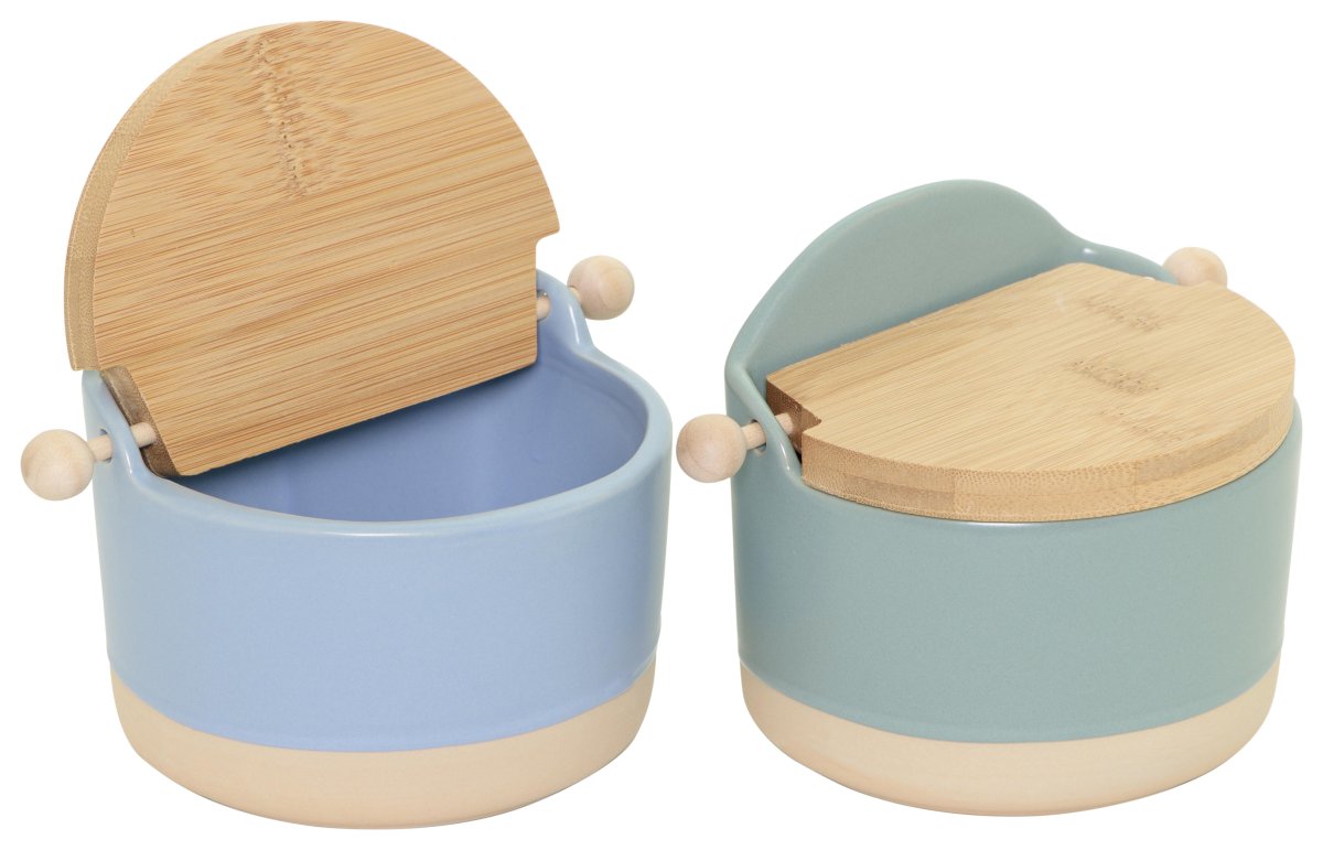 Portasale / formaggiera in ceramica con tappo bamboo colori assortiti