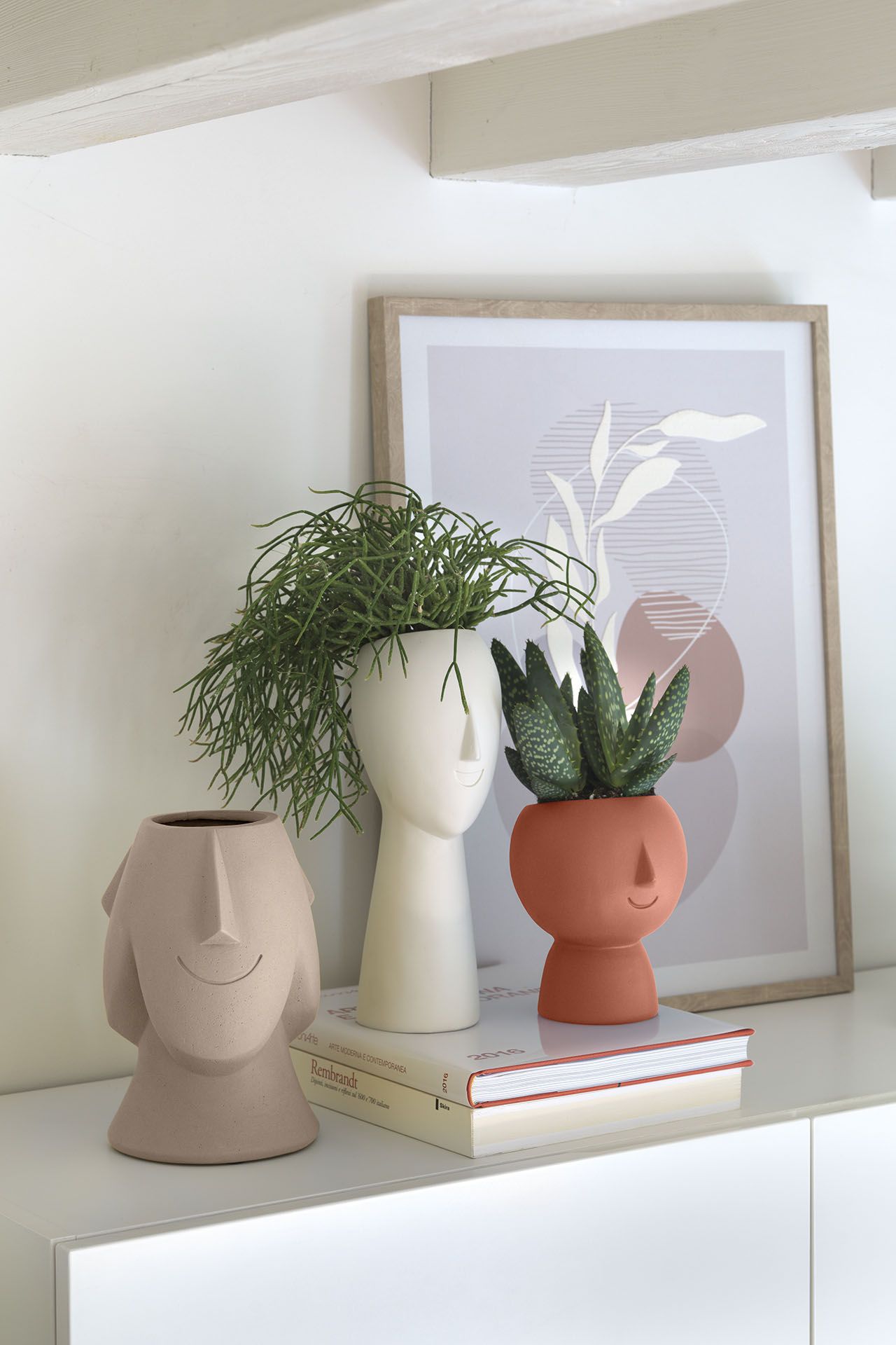 Descrizione: Questo vaso in ceramica arancione è un vero e proprio gioiello di stile, dove la vivacità del colore si fonde con la particolarità della decorazione, creando un'atmosfera giocosa e divertente. La decorazione, che raffigura un volo stilizzato con solo naso e bocca in rilievo, aggiunge un tocco di originalità e mistero, trasformando questo vaso in un elemento decorativo di grande impatto visivo. La ceramica, un materiale resistente e durevole, garantisce una lunga durata nel tempo.