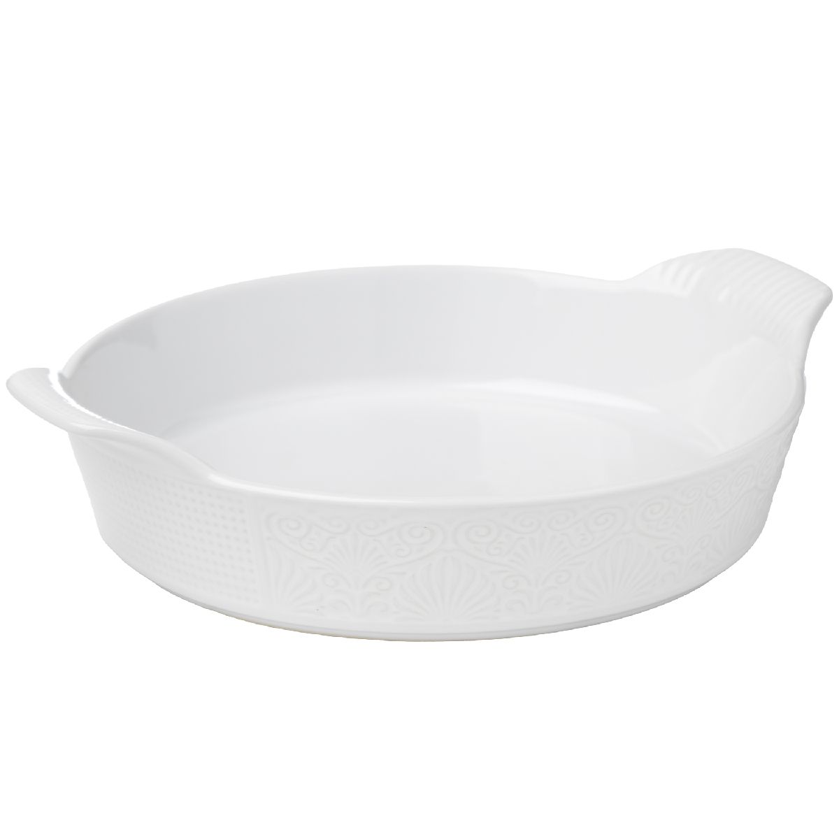 Descrizione: Pirofila tonda da forno con manici in stoneware bianco, un accessorio ideale per le tue preparazioni in cucina. Realizzata in resistente stoneware, questa pirofila offre un'ottima distribuzione del calore, garantendo una cottura uniforme dei tuoi piatti, sia dolci che salati. Il suo elegante design in bianco puro si adatta perfettamente a qualsiasi stile di cucina, mentre i manici ergonomici la rendono facile da maneggiare, anche quando è calda.