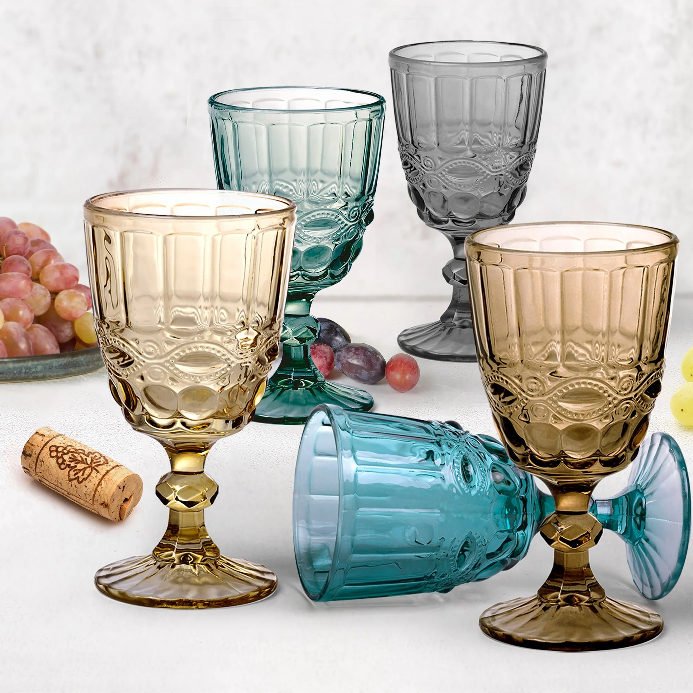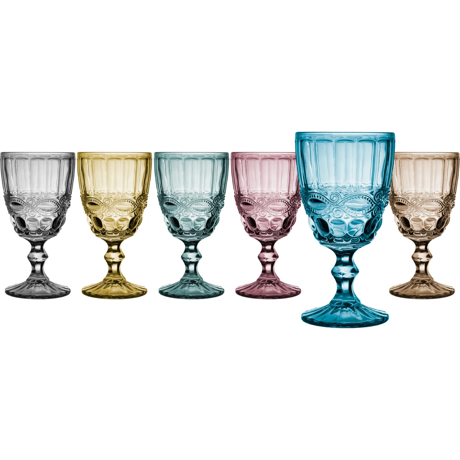 set 6pz calici vetro barocco colorati