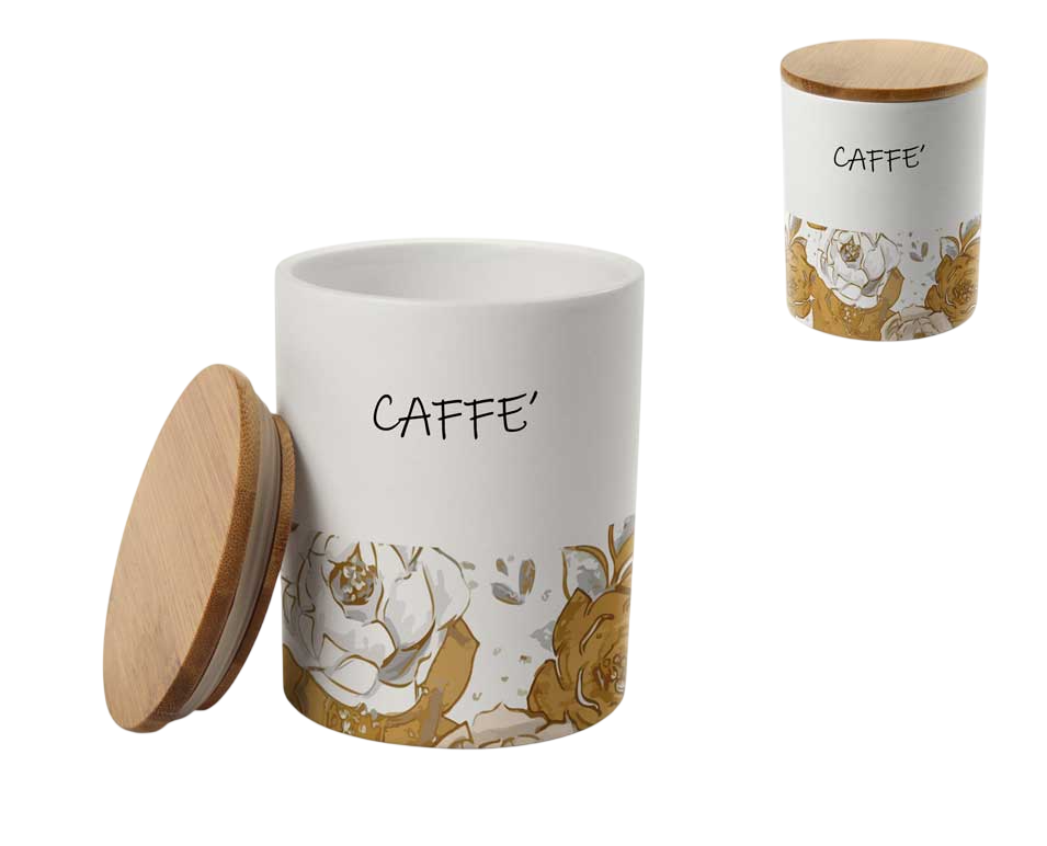 Descrizione: barattolo in ceramica tonto con tappo in legno per il caffè