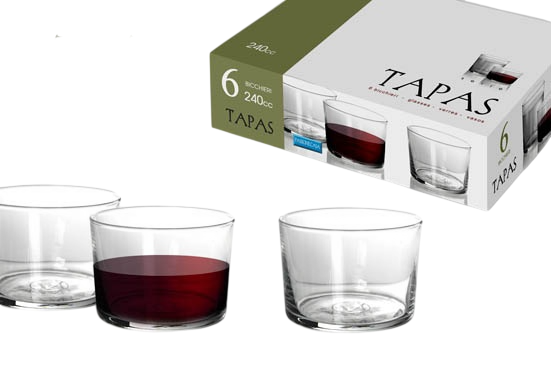 Descrizione: Tapas Bicchiere Vino è un set di 6 bicchieri acqua in vetro, con una capacità di 240 cc ciascuno. Questi bicchieri sono perfetti per servire acqua, succhi di frutta o altre bevande durante i pasti. Il loro design semplice e raffinato li rende adatti a qualsiasi tipo di occasione, dal pranzo in famiglia alla cena con amici. La loro capacità li rende abbastanza capienti per soddisfare le esigenze di ogni ospite. Inoltre, essendo realizzati in vetro, sono facili da pulire.