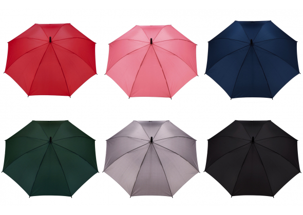 Ombrello automatico in metallo, fibra di vetro e Pongee con manico in plastica--ass. 6 colori--diam. cm. 103
