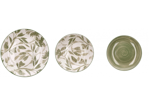 Descrizione: Rinnova la tua tavola con il Servizio Piatti Zaira da 18 pezzi, un perfetto connubio tra stile naturale e raffinatezza contemporanea. Realizzato in pregiata porcellana, questo set si distingue per le sue delicate decorazioni ispirate al mondo botanico e le tonalità rilassanti del verde salvia e oliva.