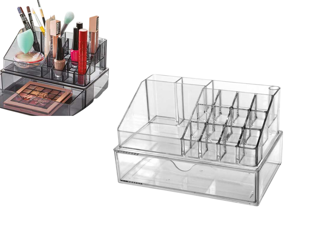 Descrizione: Basta frugare in borse del trucco disordinate! Con il nostro organizer multi-livello, ogni prodotto ha il suo posto. Perfetto per ottimizzare i piccoli spazi e tenere in ordine la tua collezione di cosmetici.