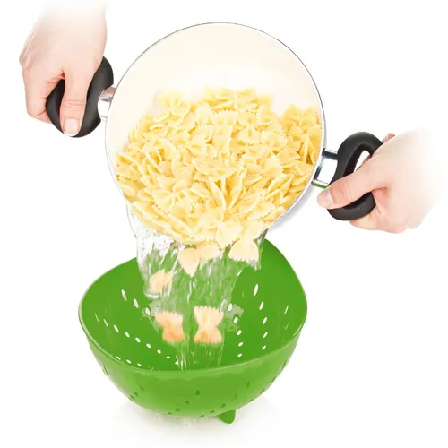 Descrizione: Ecco uno scolatutto davvero utile: è prodotto in plastica resistente, perfetto per risciacquare frutta e verdura o per scolare l'acqua di cottura di pasta, verdura bollita etc. (resiste fino a 100 °C). Ha una pratica impugnatura che ti permette di tenerlo saldamente con una mano mentre con l'altra lavi la frutta.
