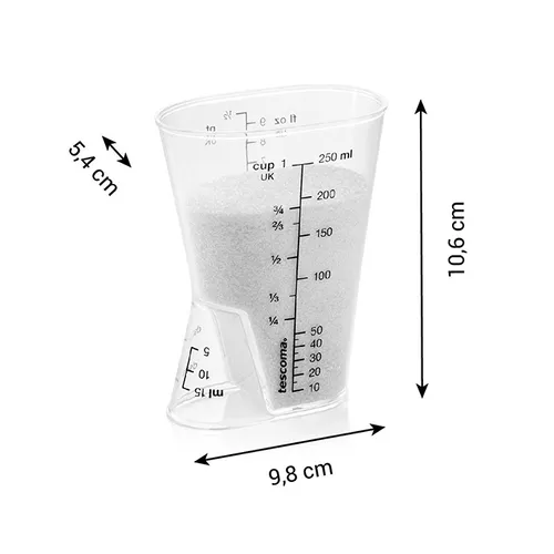 Descrizione: Un accessorio incredibilmente versatile in cucina, indispensabile per misurazioni precise e veloci, sia con liquidi che con ingredienti secchi. Dotato di 6 scale graduate: millilitri (ml), once fluide (fl oz), pinte britanniche (pt), tazze (cup), cucchiai (tbsp) e cucchiaini (tsp), è l’alleato perfetto per convertire e misurare con facilità le quantità in unità internazionali.