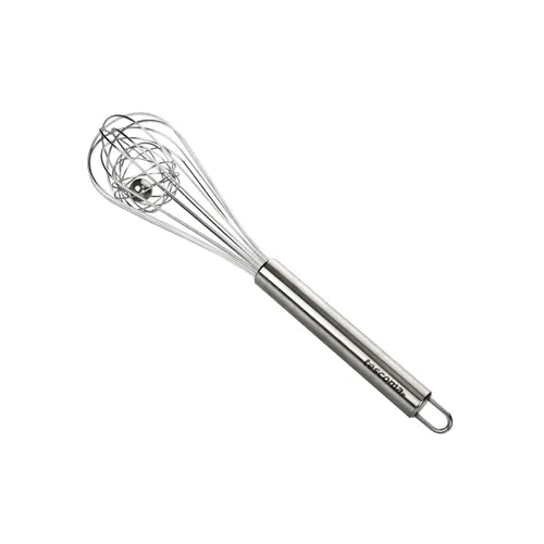 Descrizione: L’aria è l’ingrediente segreto per ottenere composti soffici e spumosi. Montare un impasto vuol dire lavorarlo in modo da fargli inglobare aria; la palla interna a questa frusta vi aiuterà in questo compito, la doppia rotazione inoltre evita la formazione di grumi. È prodotta in acciaio inox.