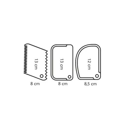 Descrizione: Questo set ti permette di ottenere torte perfette come quelle comprate in pasticceria. Ogni spatola ha una funzione diversa: la gialla flessibile è ideale per raccogliere i più piccoli residui di impasto dalle ciotole, la bianca dura è indicata per livellare perfettamente la panna o le creme sul pan di spagna e quella marrone dentellata per creare simpatici decori. Prodotte in plastica resistente di alta qualità.