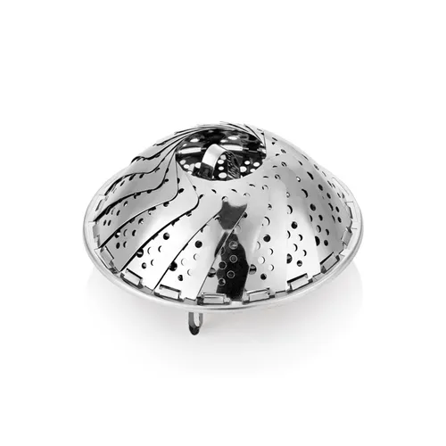 Descrizione: La cottura al vapore è pratica e sana, posizioni il cestello sopra ad un paio di centimetri d'acqua in ebollizione e lasci cuocere senza aggiungere grassi. Disponibile in due diverse dimensioni, entrambe con alette richiudibili che, aperte, si adattano a tutti i più comuni formati di pentola. Grazie ai piedini, il cestello rimane sollevato, così da non entrare a contatto diretto con l'acqua. Richiuso, occupa pochissimo spazio. Prodotto interamente in acciaio inox di altissima qualità.