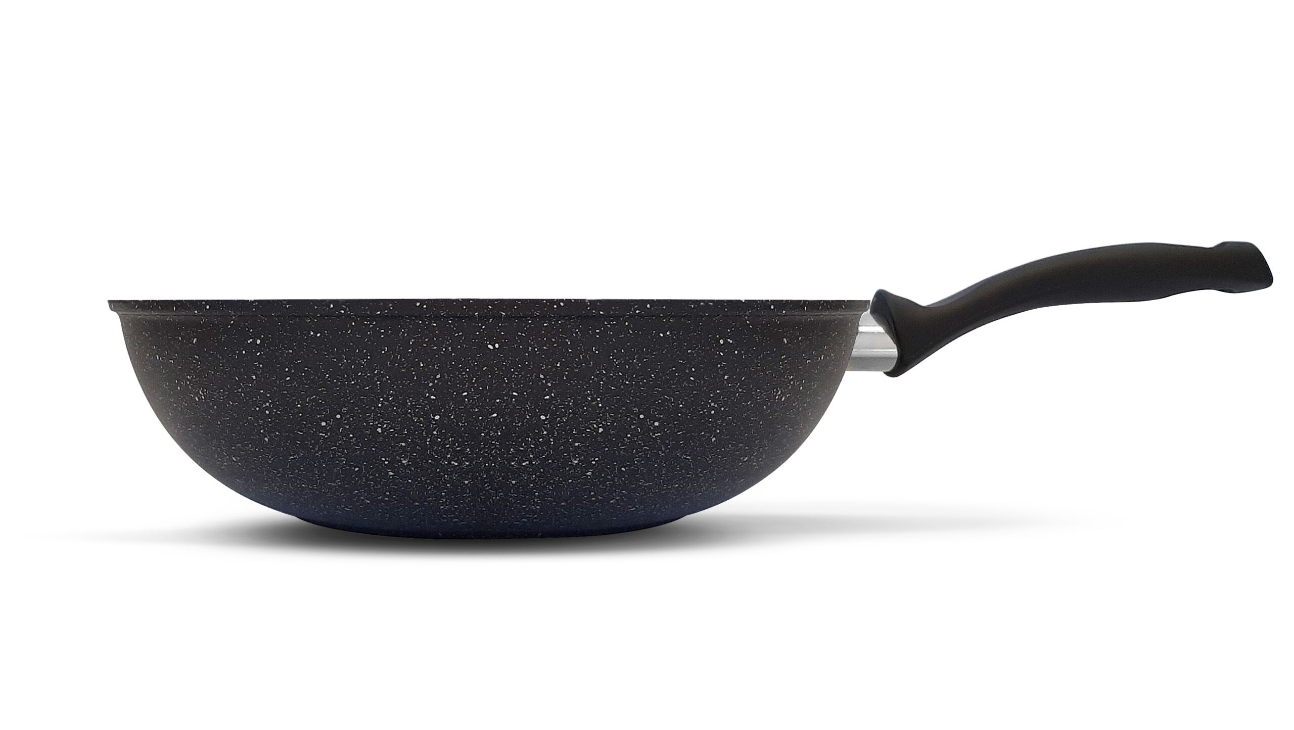 Descrizione: Rinnova la tua cucina con questo Wok di alta qualità, ideale per cotture saltate e ricette orientali. Il rivestimento antiaderente rinforzato effetto pietra garantisce una cucina sana con pochi grassi e una pulizia ultra rapida. Il corpo profondo in alluminio assicura una diffusione del calore uniforme, mentre il manico ergonomico offre una presa sicura e confortevole.