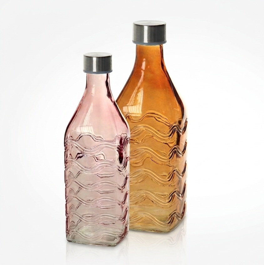 Descrizione: Bottiglia in vetro da 1L, ognuna con un colore unico e vibrante. Il tappo ermetico in metallo garantisce una chiusura sicura e a prova di perdite. Perfette per personalizzare la tua tavola e ridurre l'utilizzo di plastica.