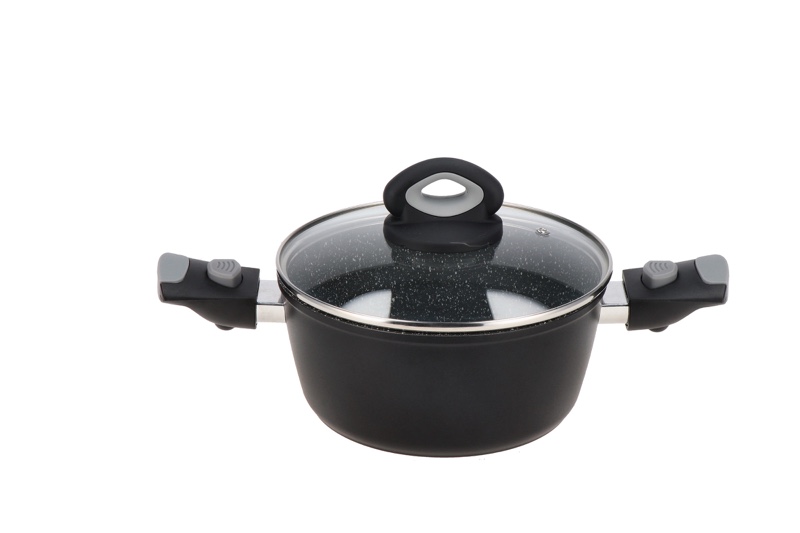 Descrizione: Casseruola antiaderente con coperchio e corpo in alluminio ad alto spessore, per cotture rapide, uniformi e senza grassi aggiunti. Manici removibili in silicone per una presa antiscivolo. Adatta a tutti i piani, anche a induzione.