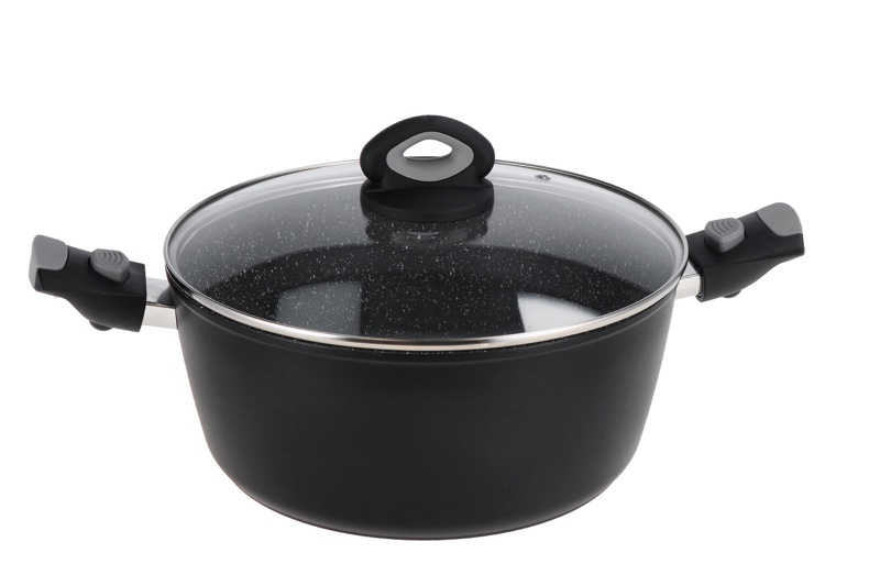 Descrizione: Casseruola antiaderente con coperchio e corpo in alluminio ad alto spessore, per cotture rapide, uniformi e senza grassi aggiunti. Manici removibili in silicone per una presa antiscivolo. Adatta a tutti i piani, anche a induzione.