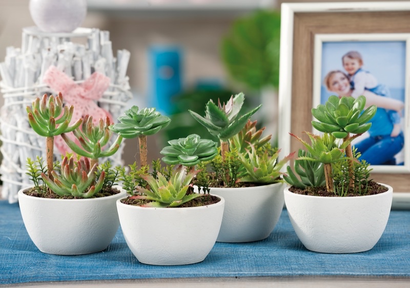 Vaso con piantine grasse per decorazione 4 modelli assortiti
