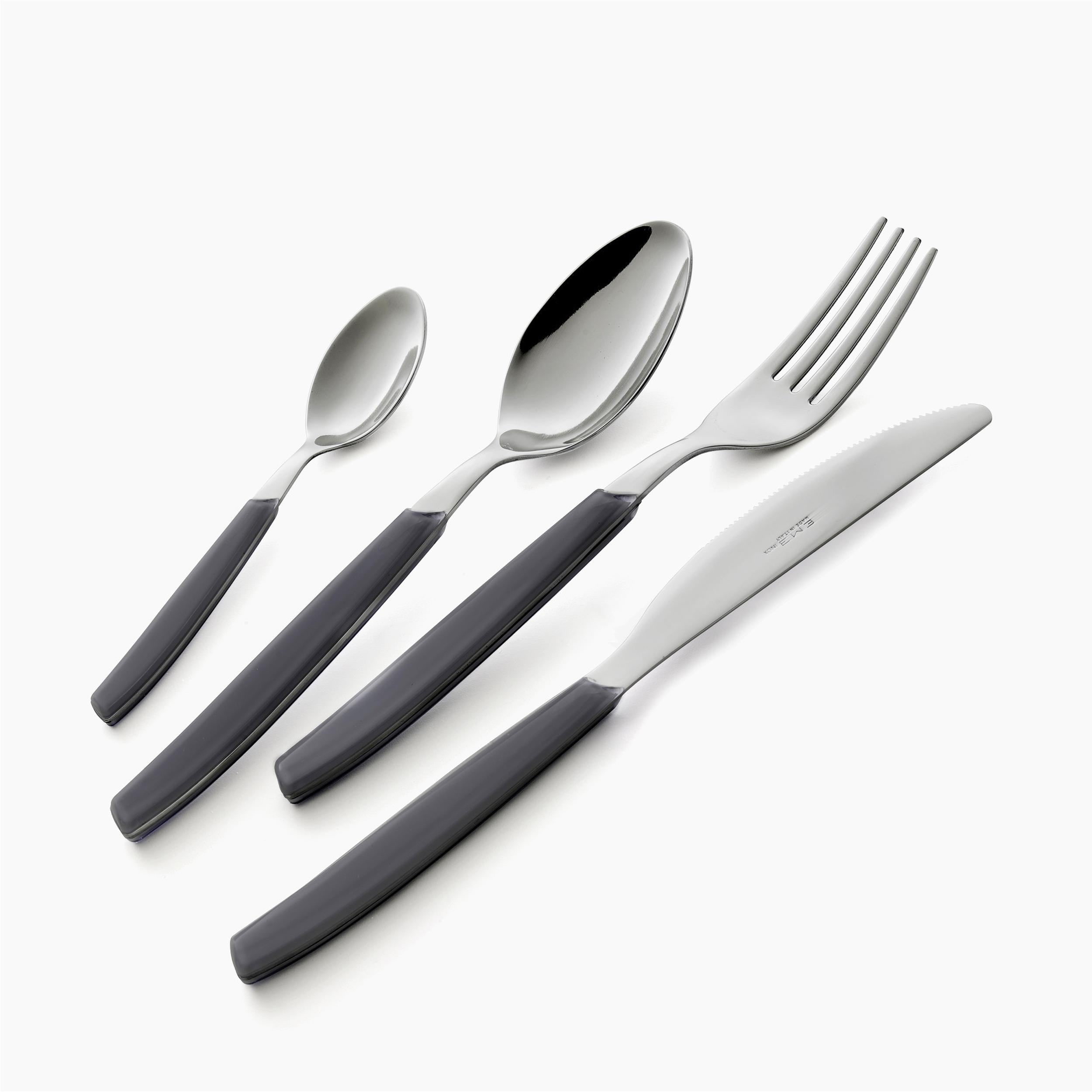 Cromo è una posata in acciaio sul cui manico vengono applicate le 2 guancette colorate che fungono da impugnatura. È una posata caratterizzata da linee armoniche e moderne capace di regalare piacevoli momenti di benessere anche a tavola grazie al colore. È indicata per una tavola giovane ed un utilizzo quotidiano.