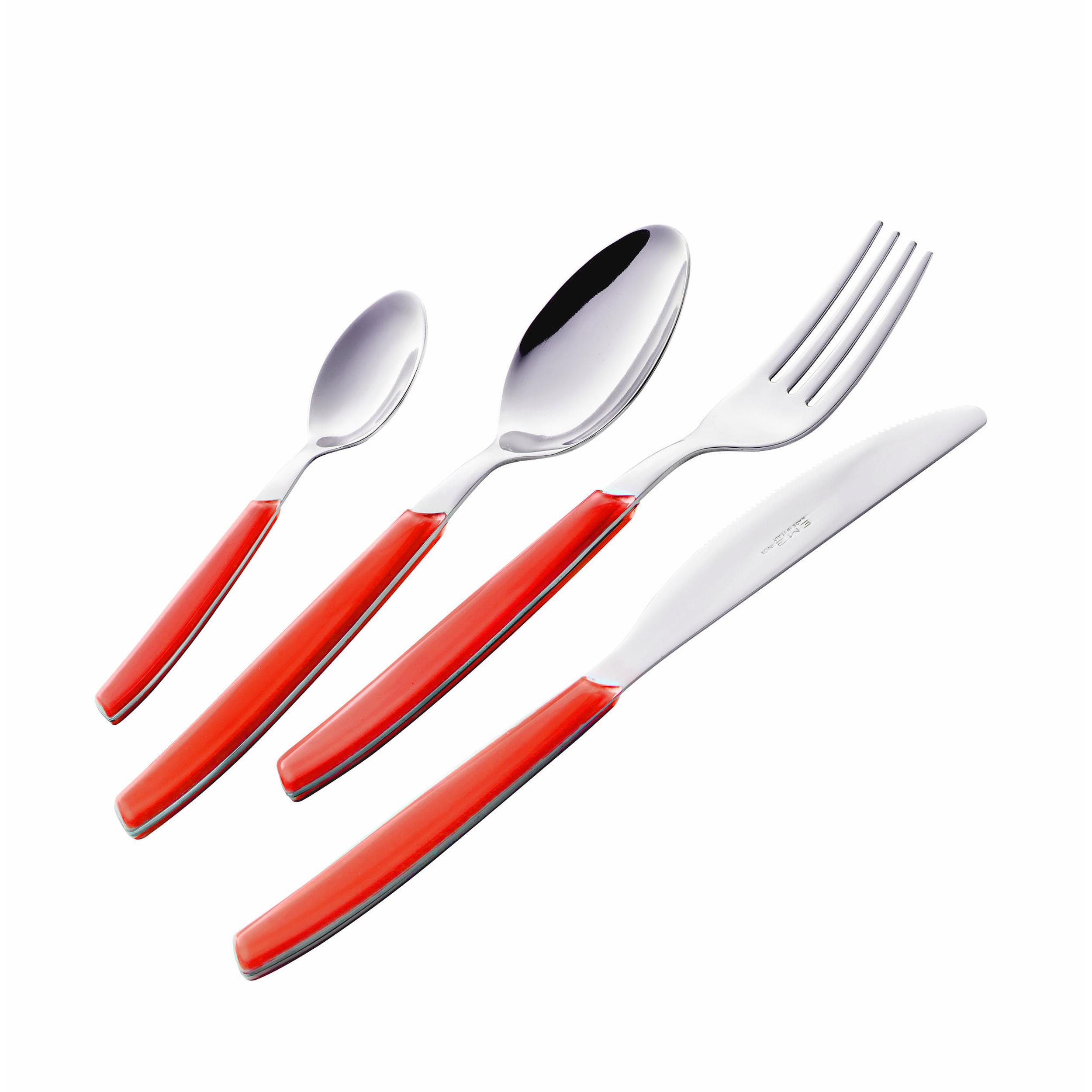 Cromo è una posata in acciaio sul cui manico vengono applicate le 2 guancette colorate che fungono da impugnatura. È una posata caratterizzata da linee armoniche e moderne capace di regalare piacevoli momenti di benessere anche a tavola grazie al colore. È indicata per una tavola giovane ed un utilizzo quotidiano.