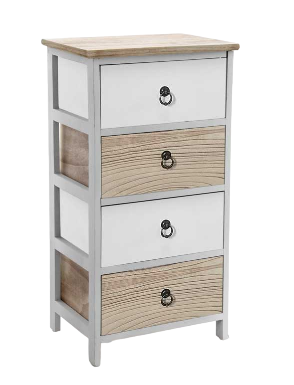 Cassettiera con 4 cassetti in legno naturale effetto anticato cm 40x29x73