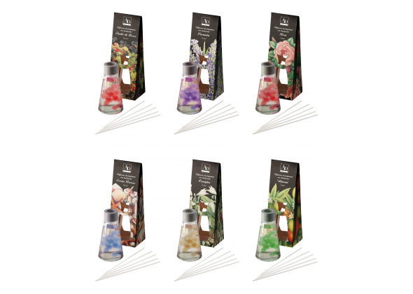 Diffusore di fragranza con gel e bastoncini--ass. 6 fragranze--75 ml.