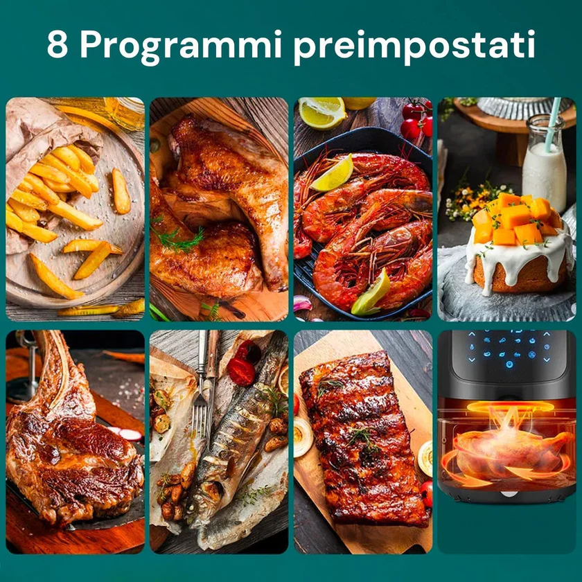 Descrizione: Cucina senza olio: Riduce fino all'80% di grassi rispetto alle friggitrici tradizionali