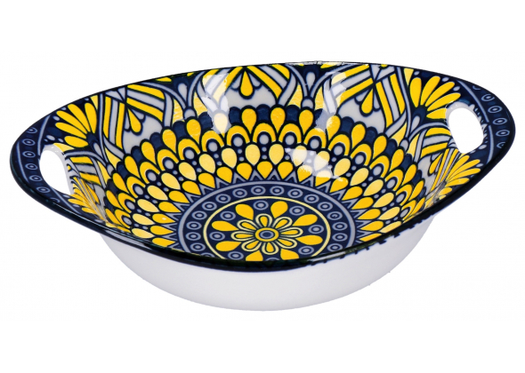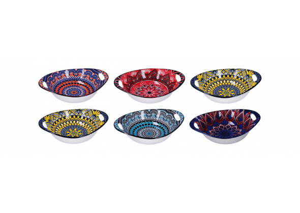 Ciotola in ceramica "Eva" con manici--ass. 6 decori--cm. 18 x 13 x h. cm. 4,5