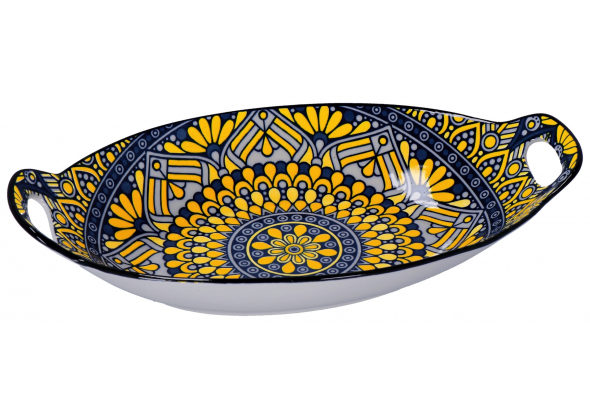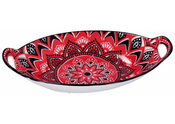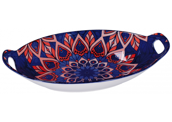 Vassoio in ceramica "Eva" con manici--ass. 6 decori--cm. 27 x 15,5 x h. cm. 5,5