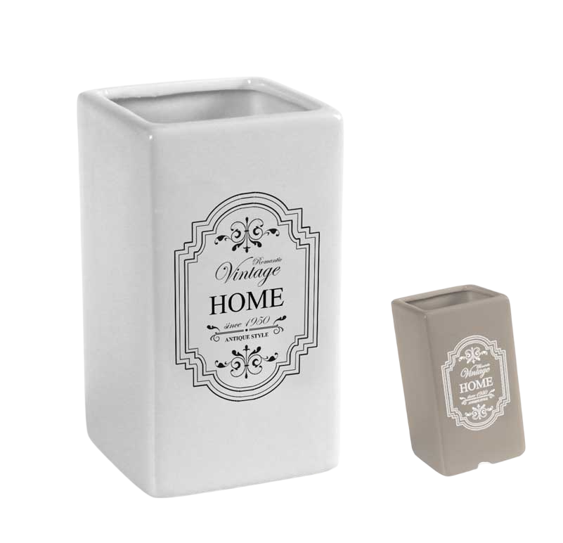 Descrizione: Scegliendo questo portaspazzolini potrai rinnovare con assoluto garbo e classe il tuo arredo bagno, differenziandolo con delle cadenze vintage shabby che colpiscono subito l'occhio per via della loro conformità a qualsiasi tipologia di ambiente bagno. La realizzazione in ceramica bianca con stampe a contrasto nere offre un perfetto mix di eleganza e prestazionalità adatto ad ogni esigenza.