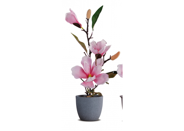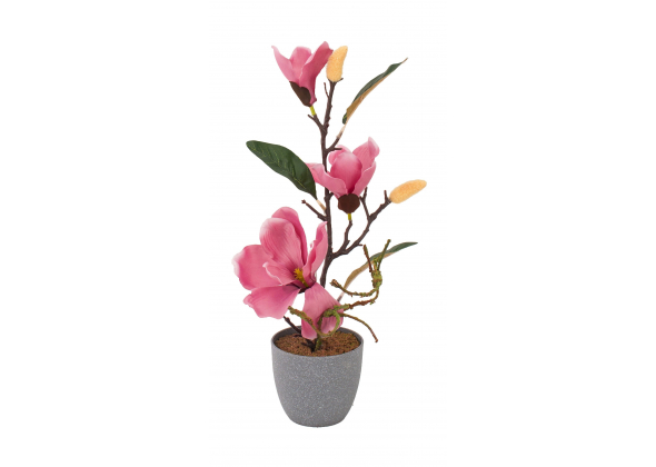 Vaso con magnolia con 3 fiori e 2 boccioli per decorazione 5 colori assortiti