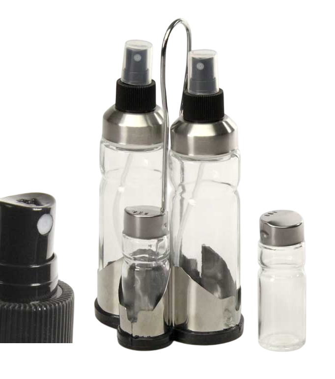 Descrizione: Il "Menage spray 4 pz 170ml + 40ml" è un set di quattro contenitori spray, ideali per l'utilizzo in cucina o a tavola. Il set include: