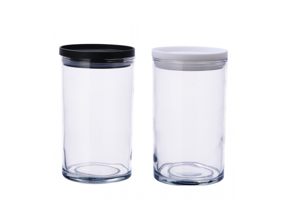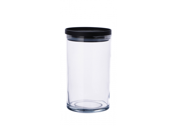 Descrizione: Un contenitore versatile per alimenti o altri oggetti, costituito da un corpo in vetro trasparente che permette di vedere il contenuto e un coperchio in plastica, spesso a vite, per una chiusura pratica e leggera.